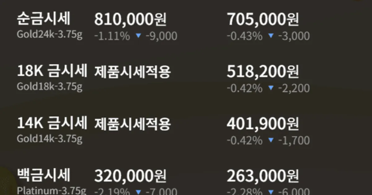 [금값시세] 한국금거래소 10월 10일 24K 금 시세 팔때 70만 5천원