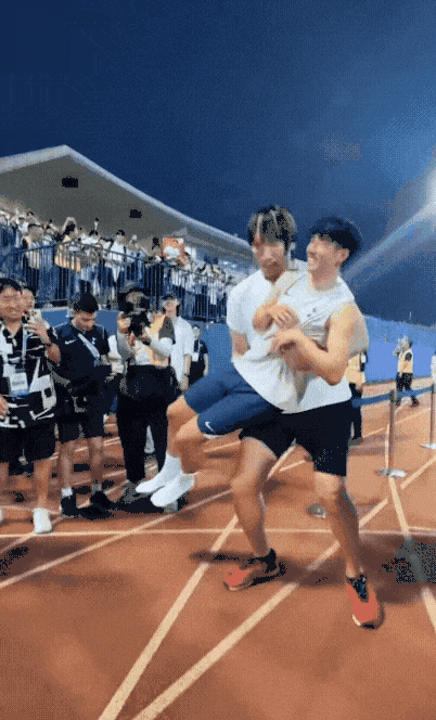 손흥민의 오랜 팬이었던 최홍만은 인사 후 그를 번쩍 들어 헹가래를 하며 응원했고, 두 사람은 손흥민의 시그니처 ‘찰칵 세리머니’를 함께 재현하며 열기를 끌어올렸다.