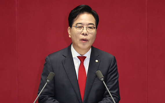 송 원내대표는 "국회는 다수 의석을 앞세운 집권여당의 일방적인 폭주와 의회 독재의 횡포로만 가득하다"며 "여당 대표는 걸핏하면 '해산' 운운하며 야당을 겁박하고 모독하는 반(反)지성의 언어폭력을 가하고, '내란 정당' 프레임을 씌워 야당 파괴·보수 궤멸의 일당 독재를 구축하려 하고 있다"고 했다.